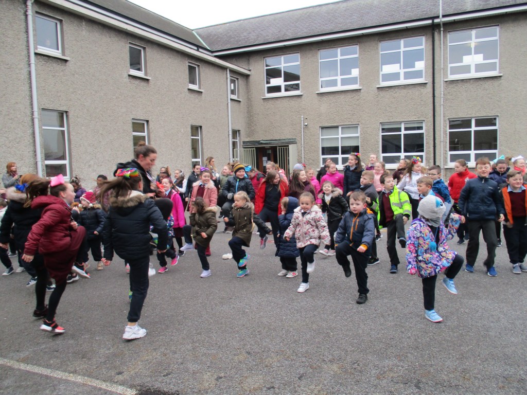 Games in the yard – the whole school play games in Irish on the yard.