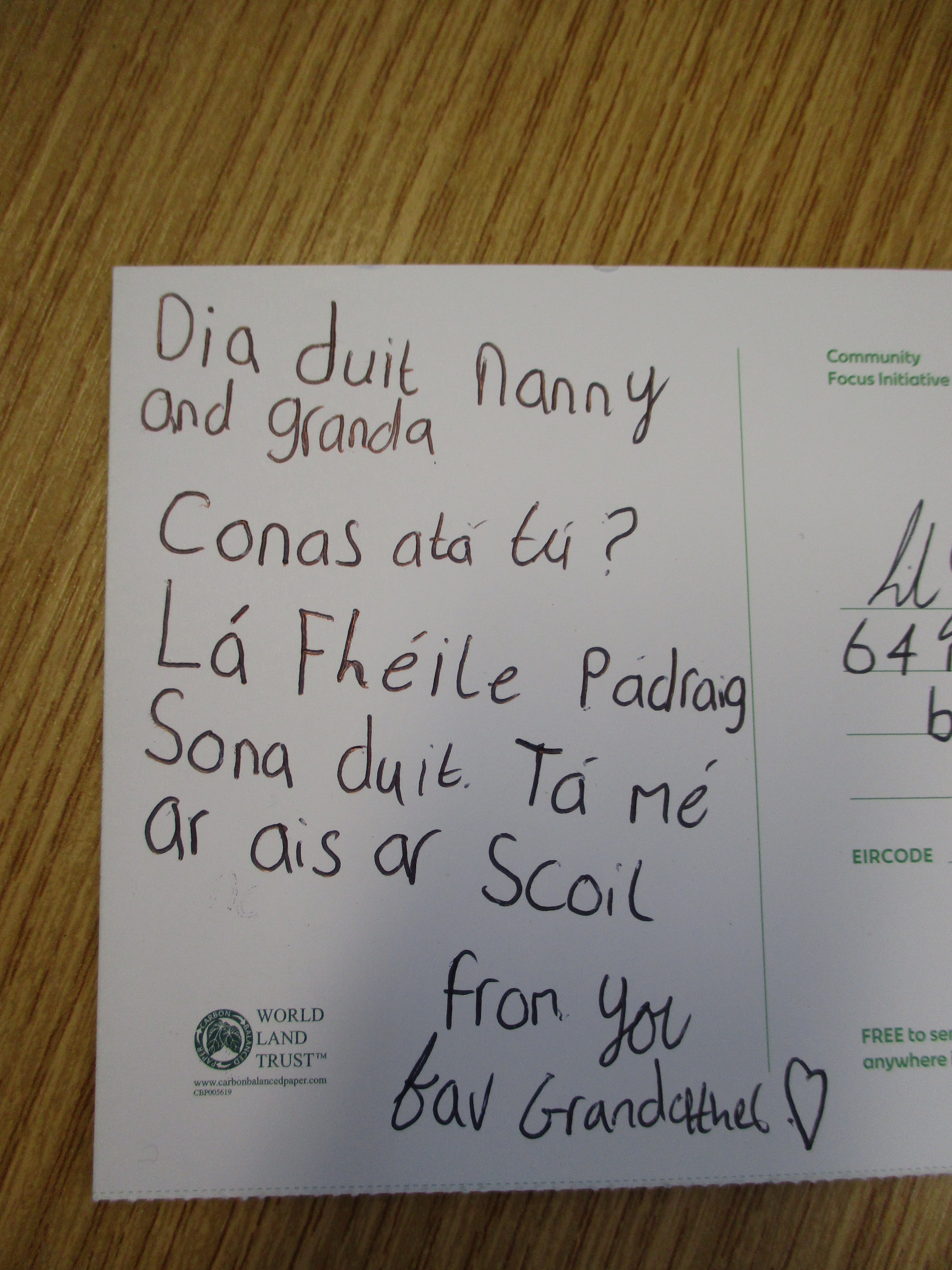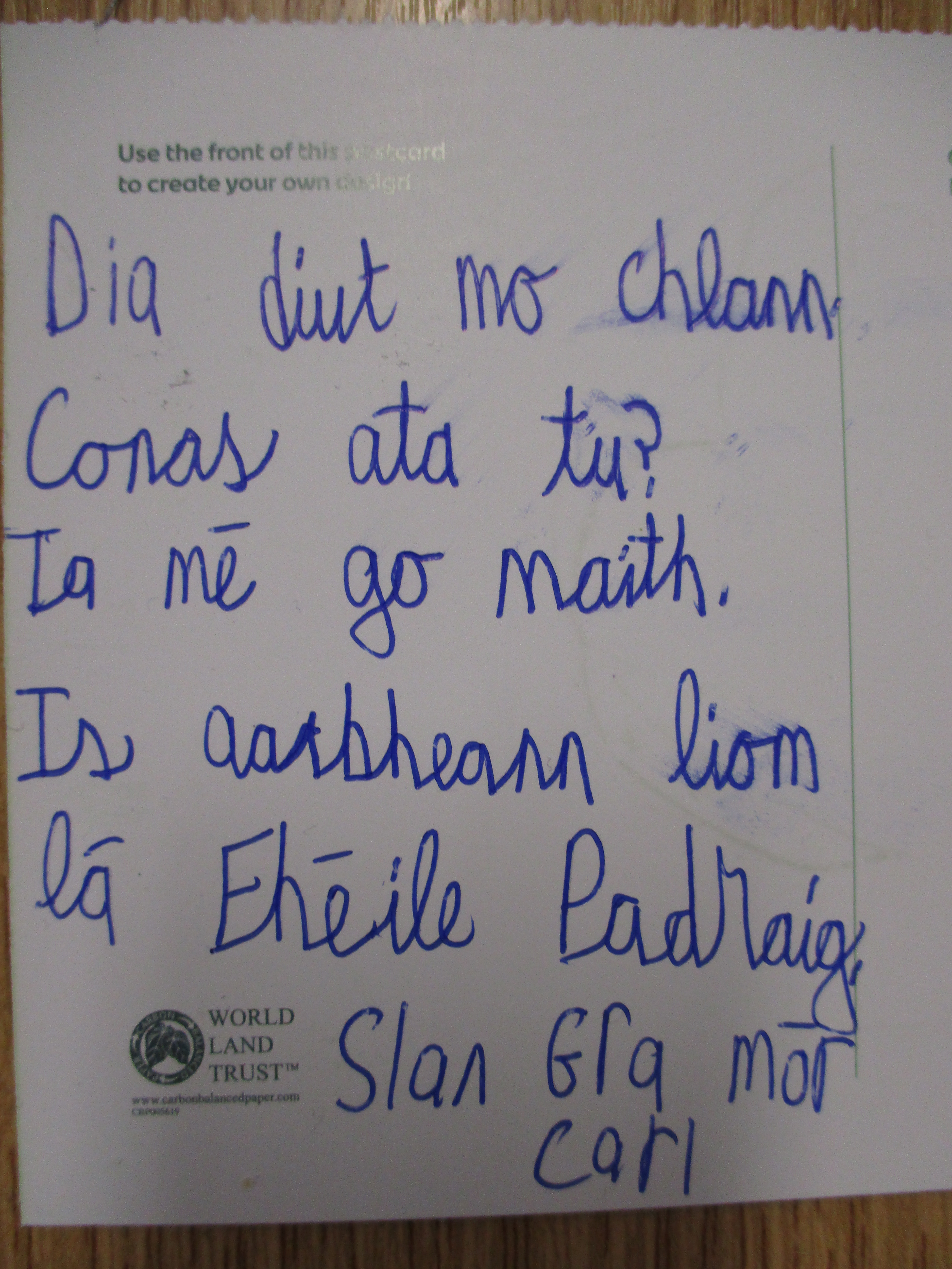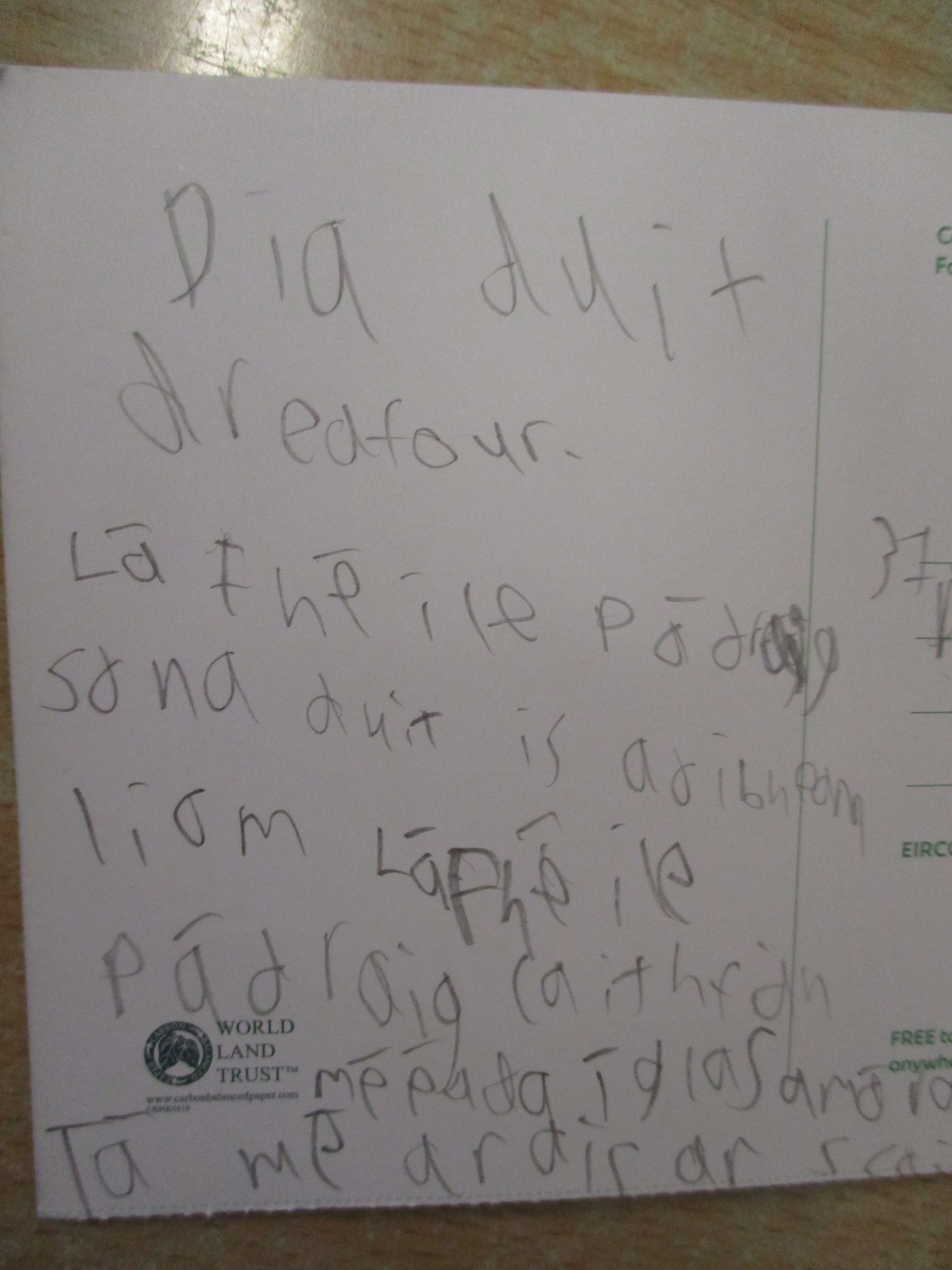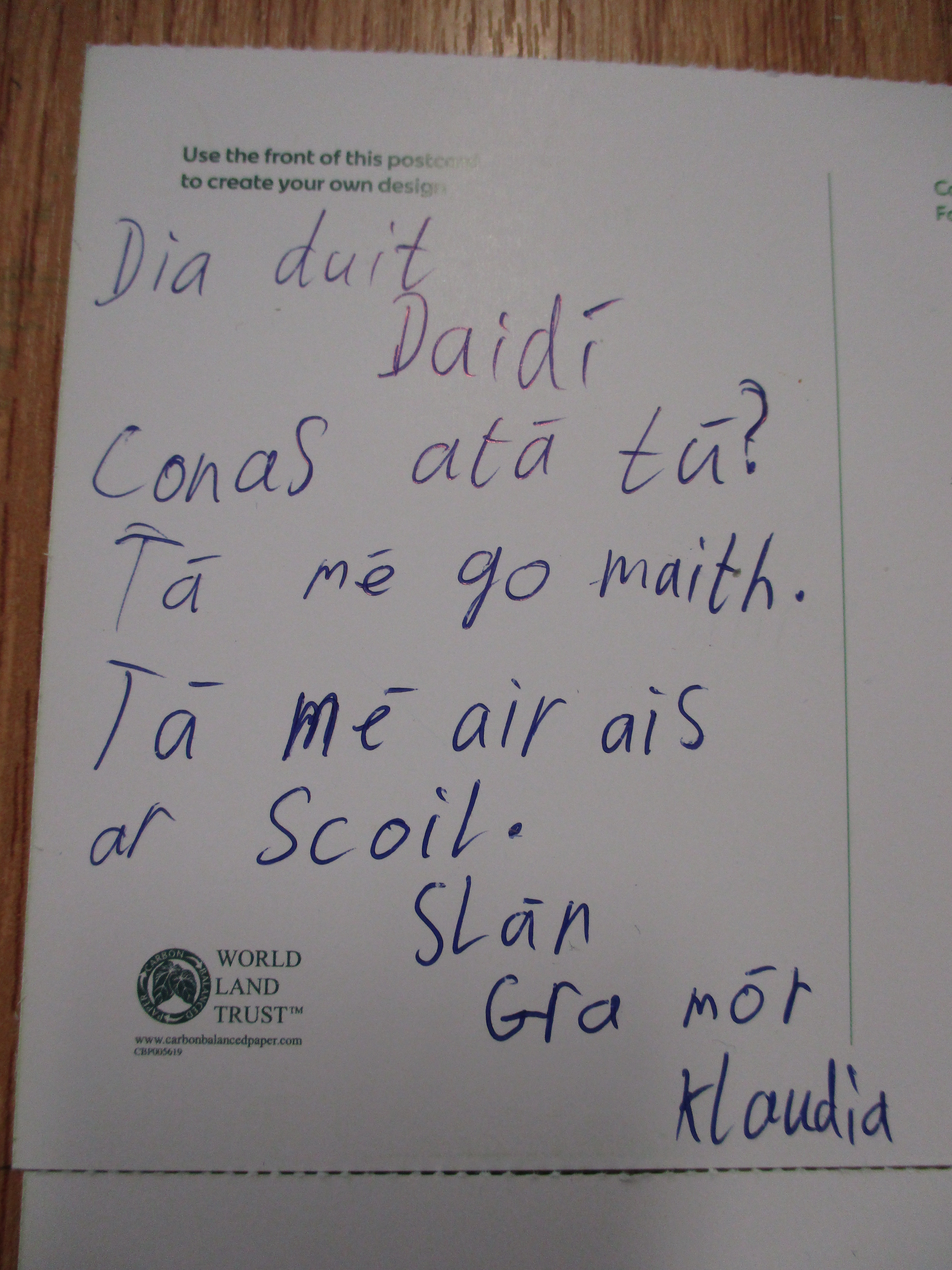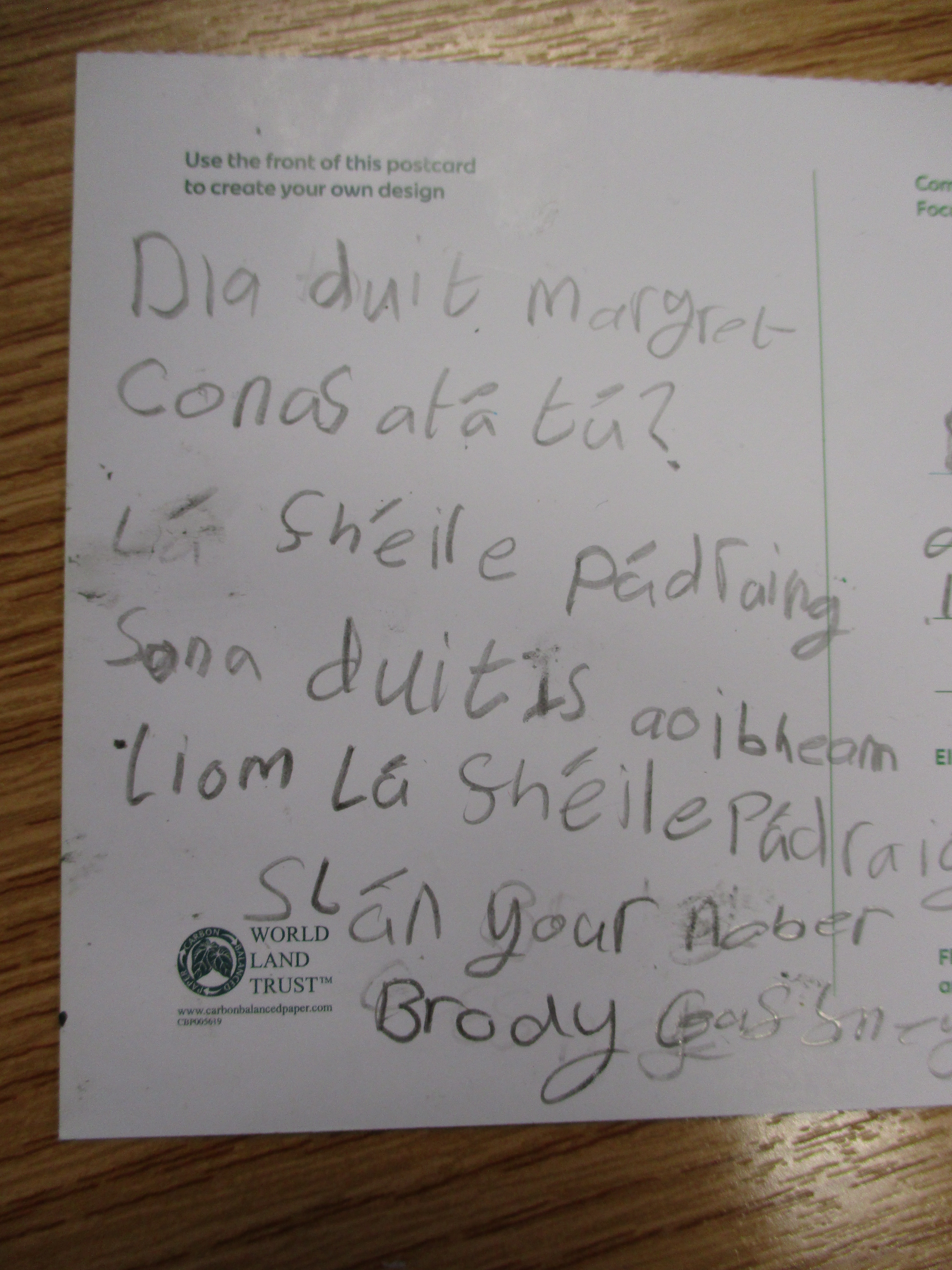 Children wrote postcards home ‘as Gaeilge’ –