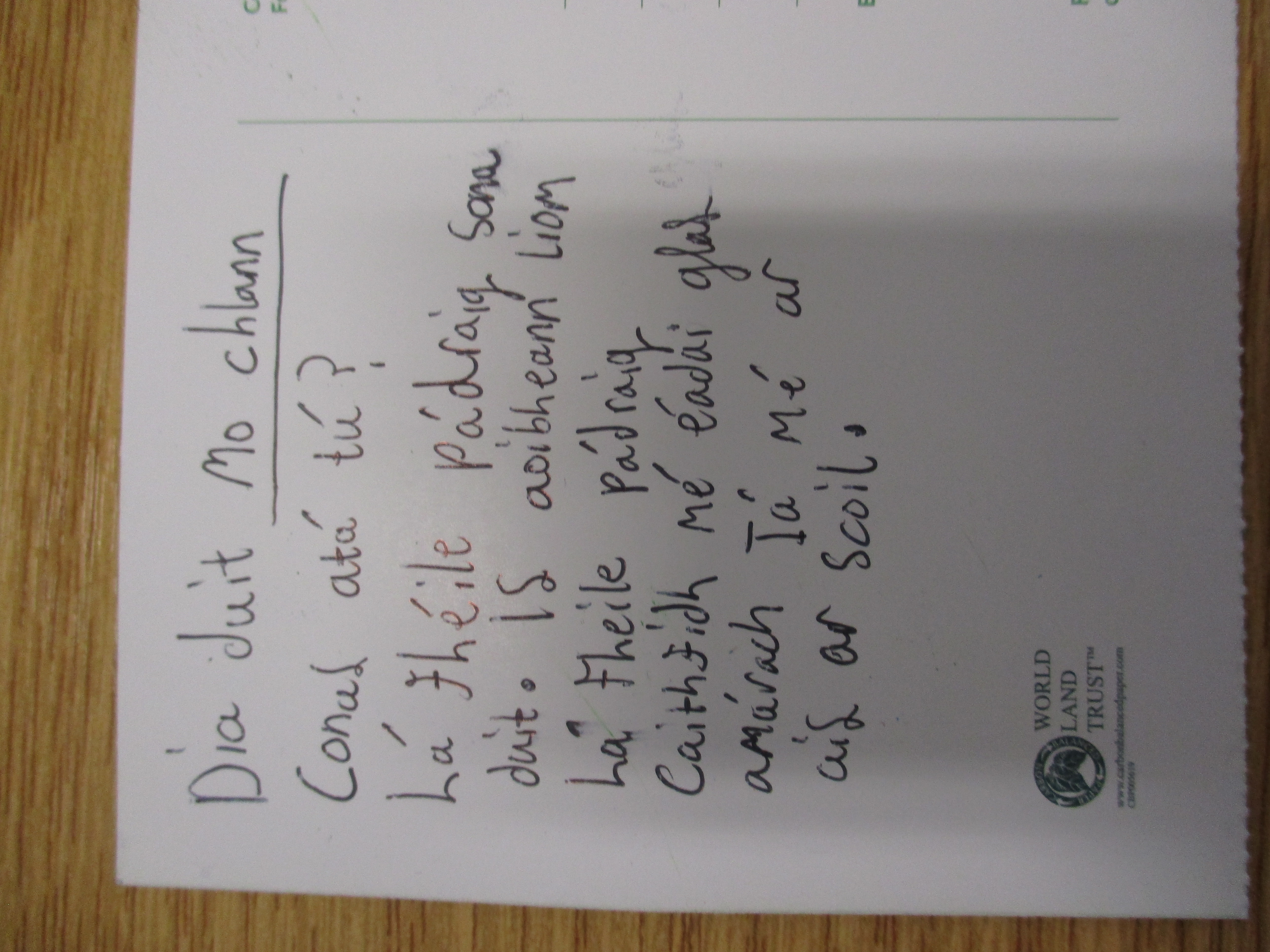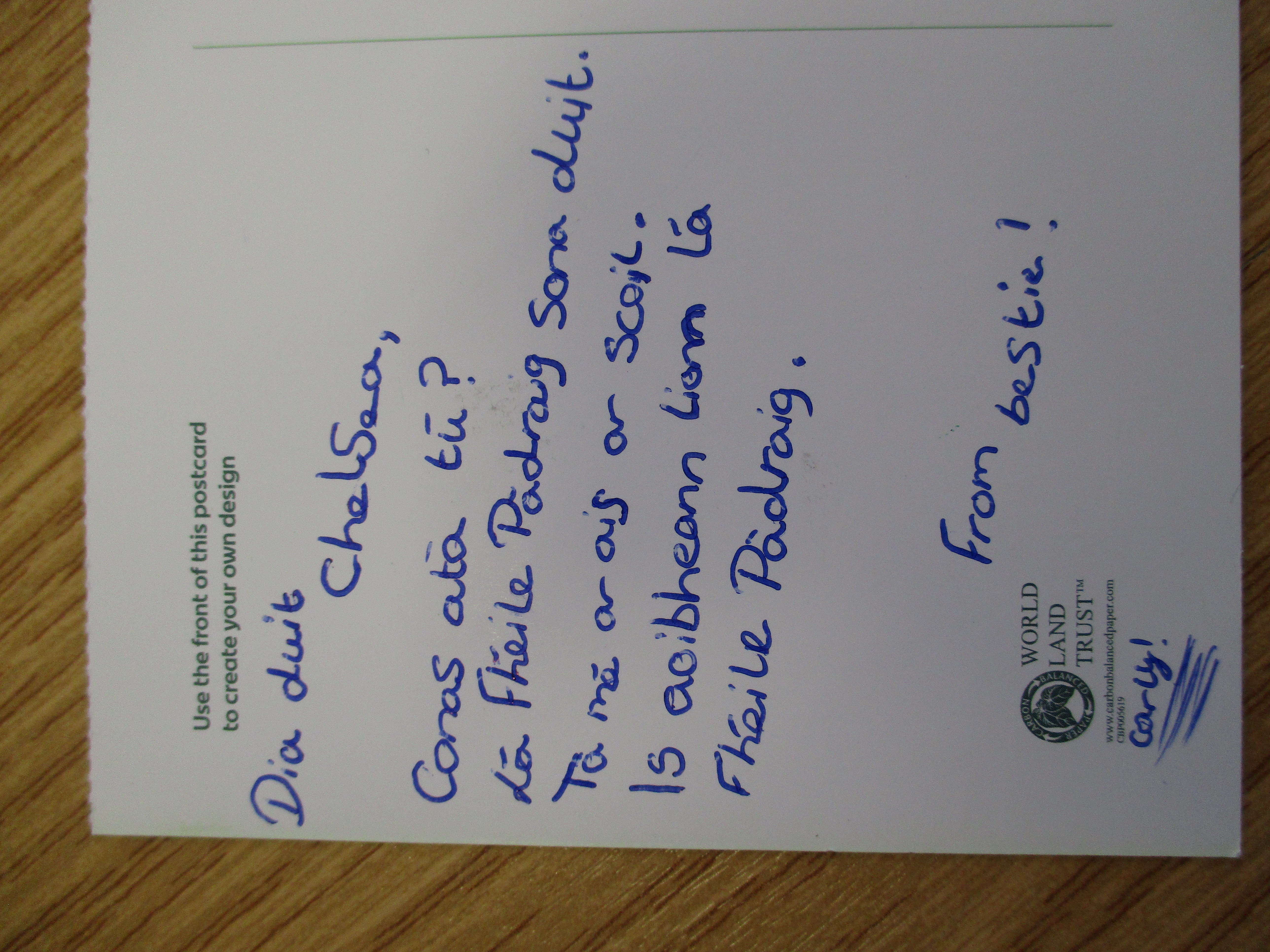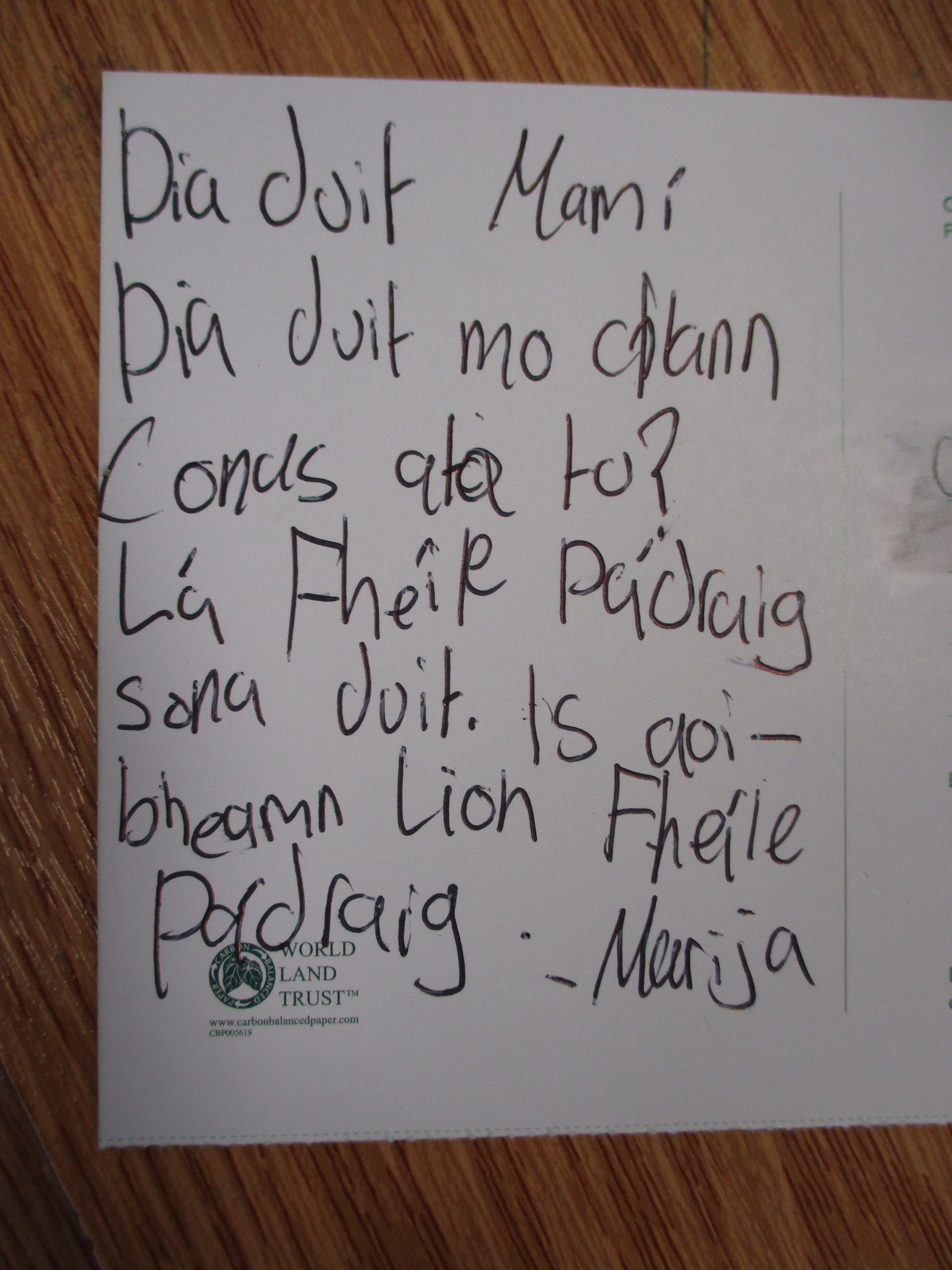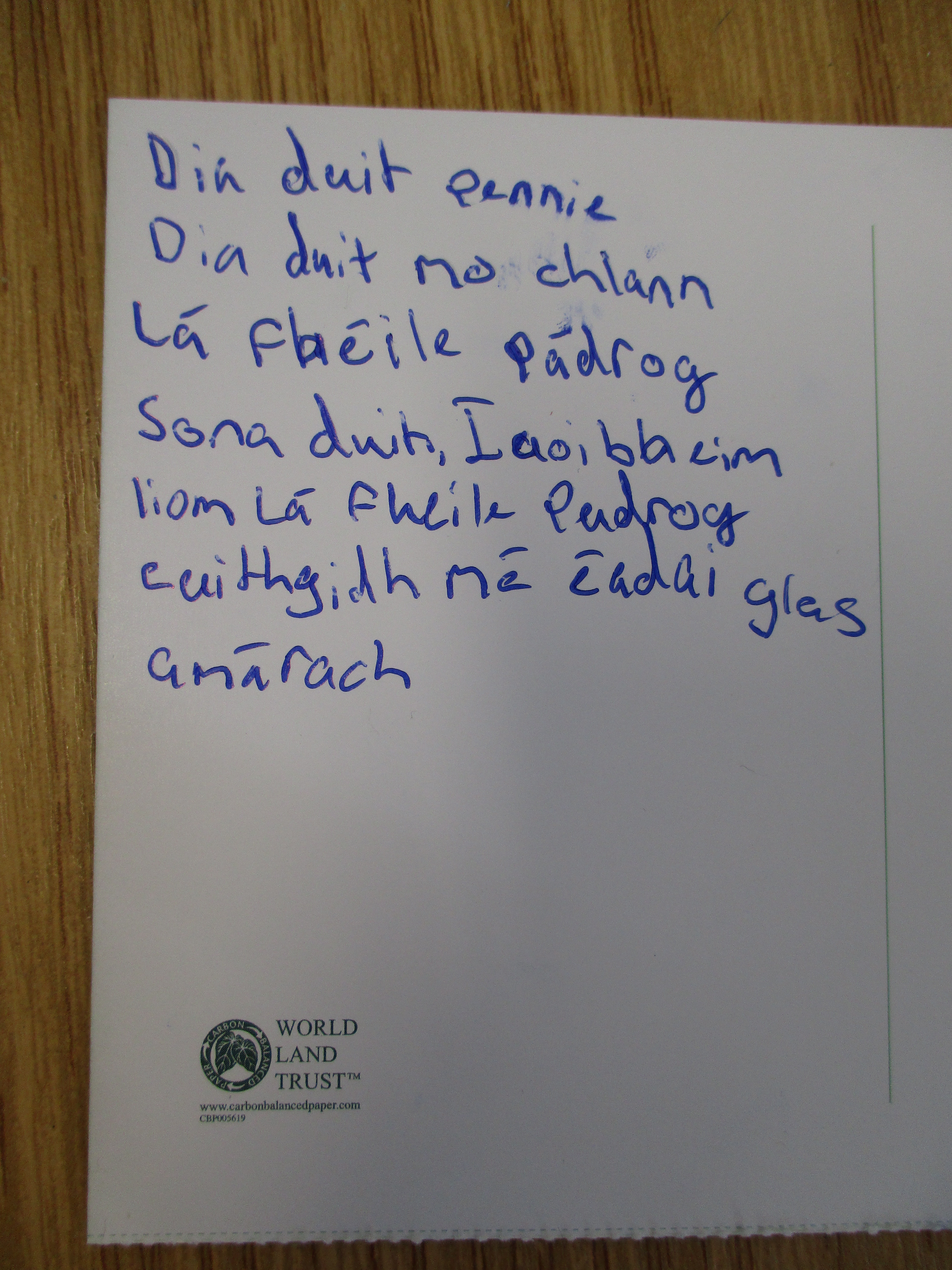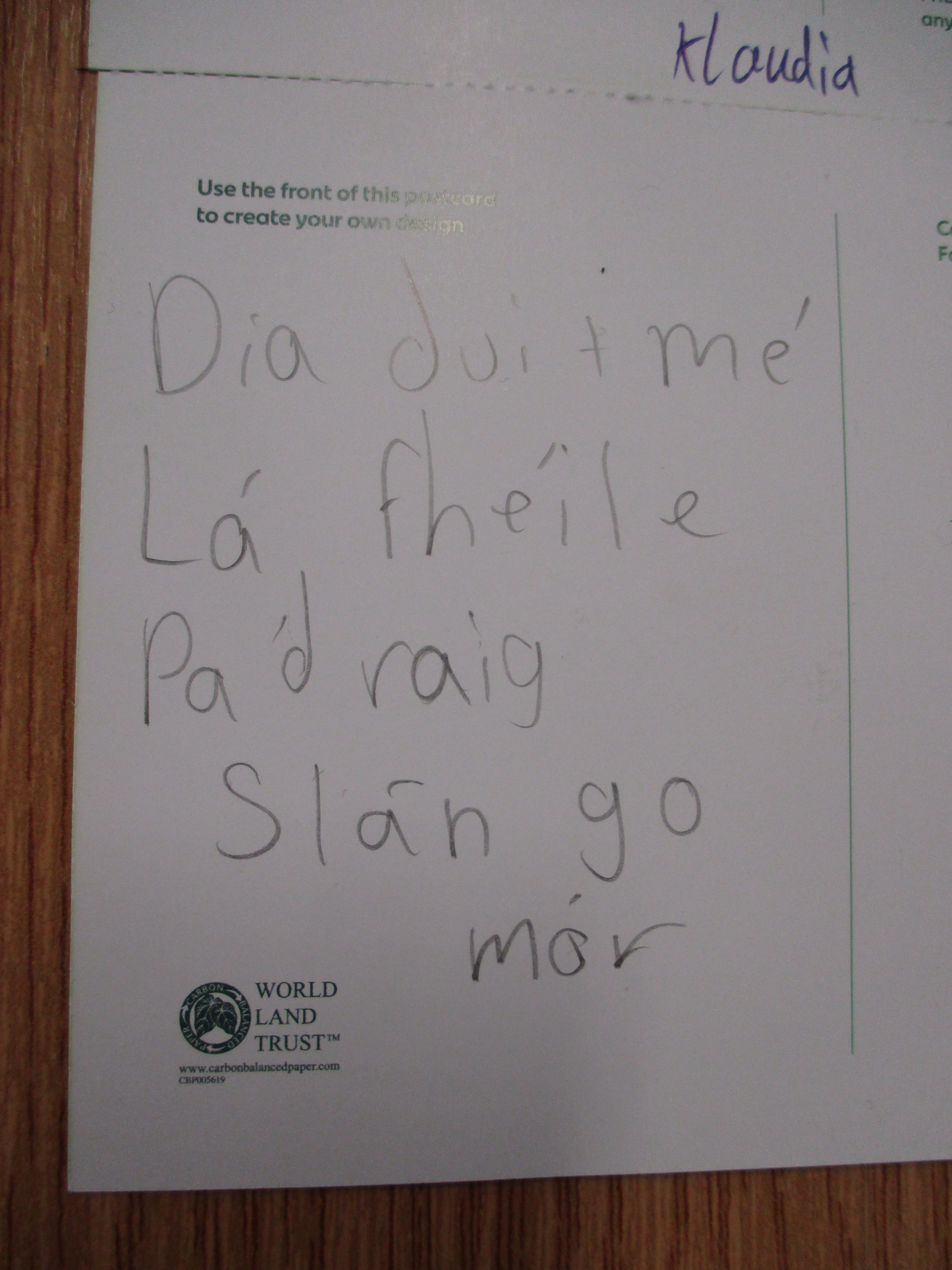 Children wrote postcards home ‘as Gaeilge’ –